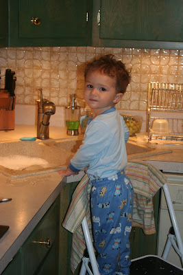 We had a rainy day yesterday. Luis asked ALL DAY to go outside to play. Just before dinner, we went out to splash in the puddles. Luis had a fantastic time.